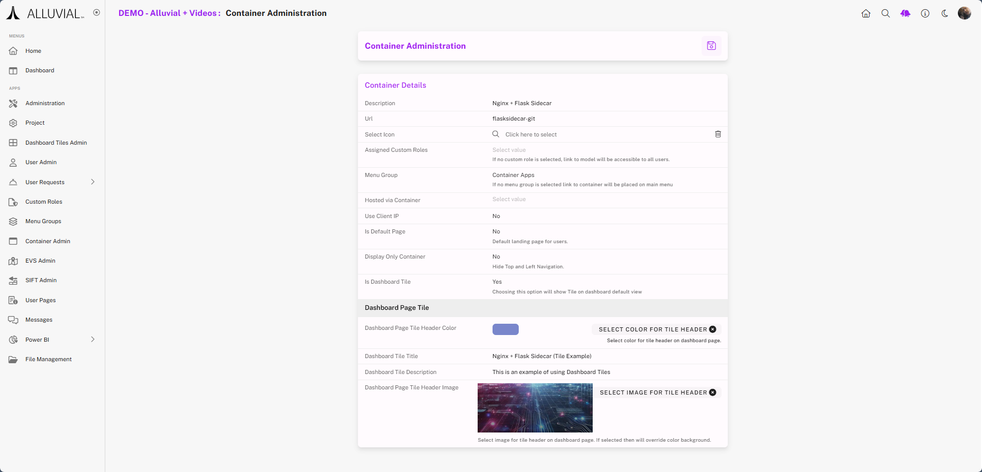Tiles must be enabled at the item level, such as on a container, EVS, or Power BI item form. The Dashboard Tiles page does not create tiles by itself; it lists and manages items that have already been configured as tiles.