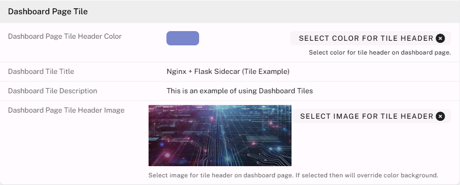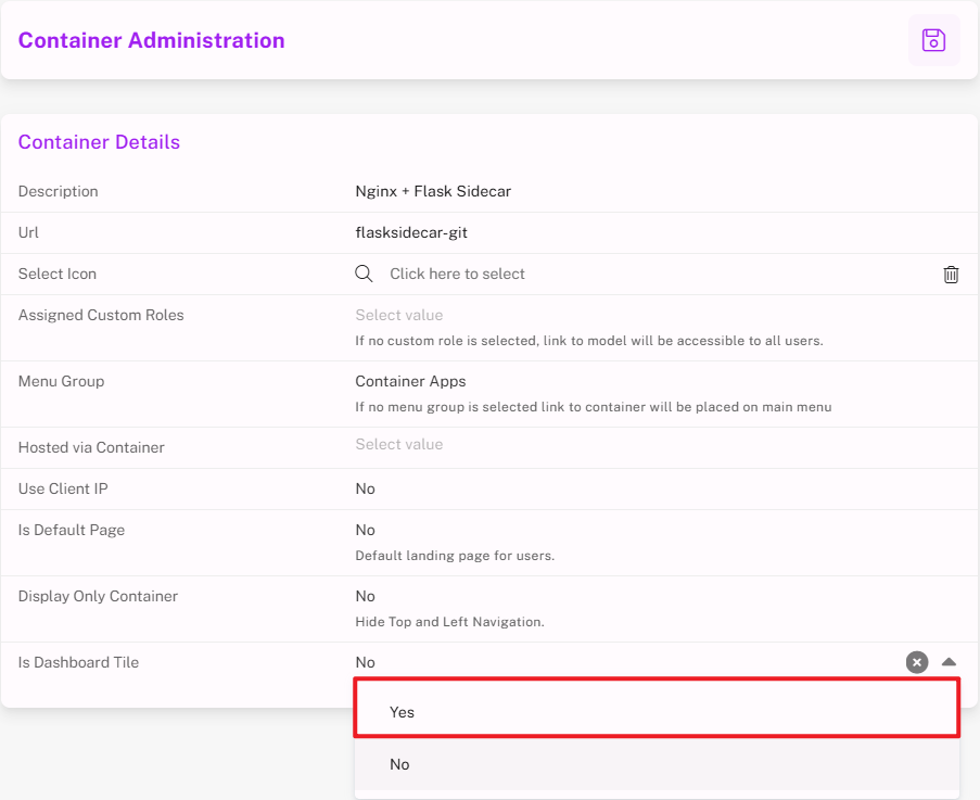 - Enable Dashboard Tile by setting the option to Yes.