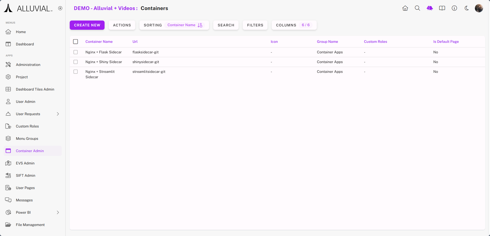 - On the Containerized Apps admin page, confirm that your containerized applications are configured.