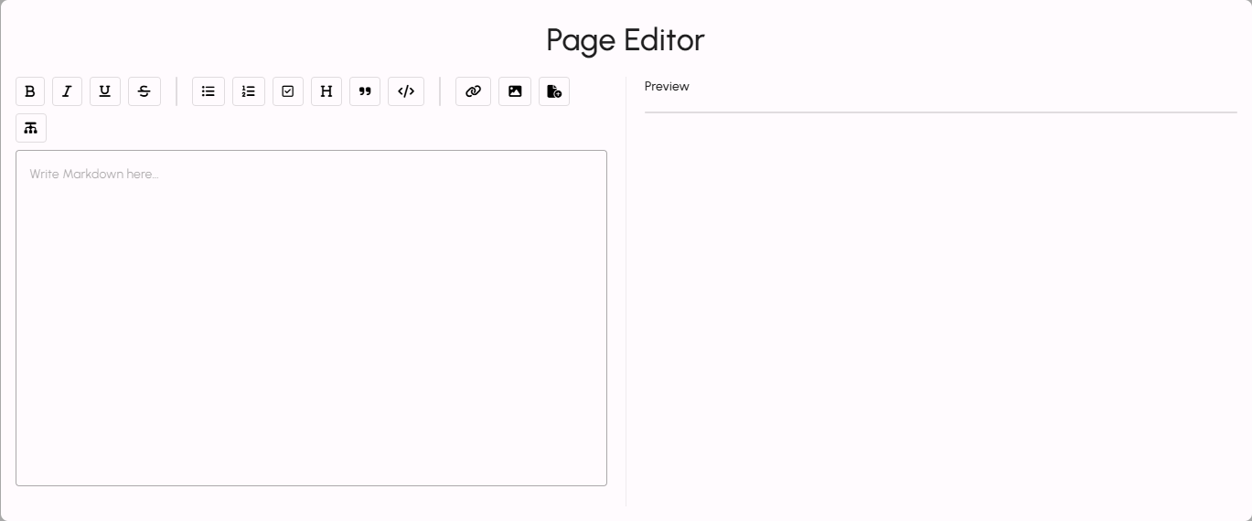 Content for User Pages is written in Markdown. The editor provides a user-friendly interface to help you format text, structure content, and preview the result before saving.